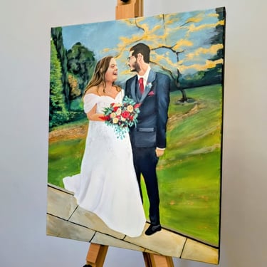 Commission a hand-painted artwork created during your wedding day, capturing a meaningful moment between you and your partner. A timeless piece to display in your home and treasure long after the celebrations end.